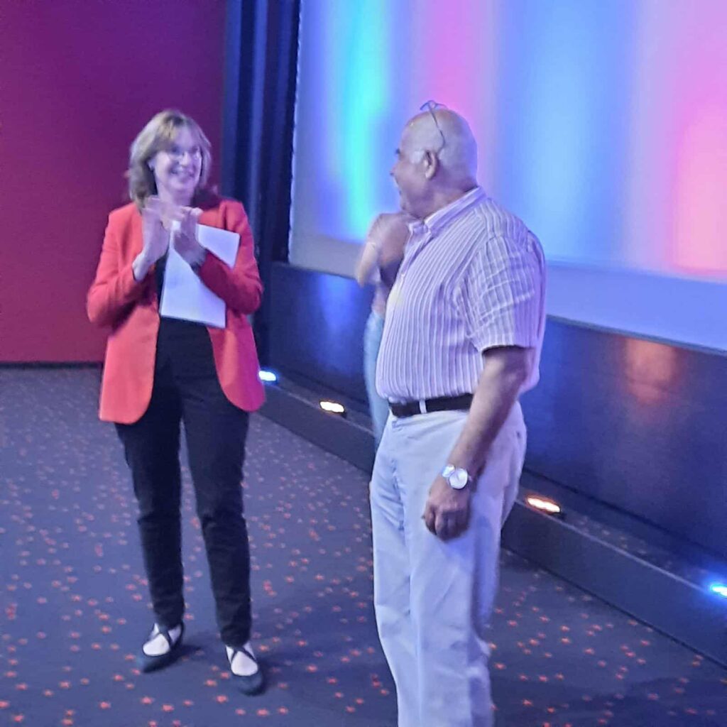 Nachdem im Jahr 2024 keine Ehrung der treuen Spenderinnen und Spender erfolgen konnte, freuten DRK-Präsidentin Vera Dunkel-Gierse sowie Vizepräsidentin und Blutspendebeauftrage des Kreisverbandes Angelika Wagner sich um so mehr, in der letzten Woche 57 Spenderinnen und Spender im Foyer des Cineplex Kinos in der Stadtmitte begrüßen zu können.
